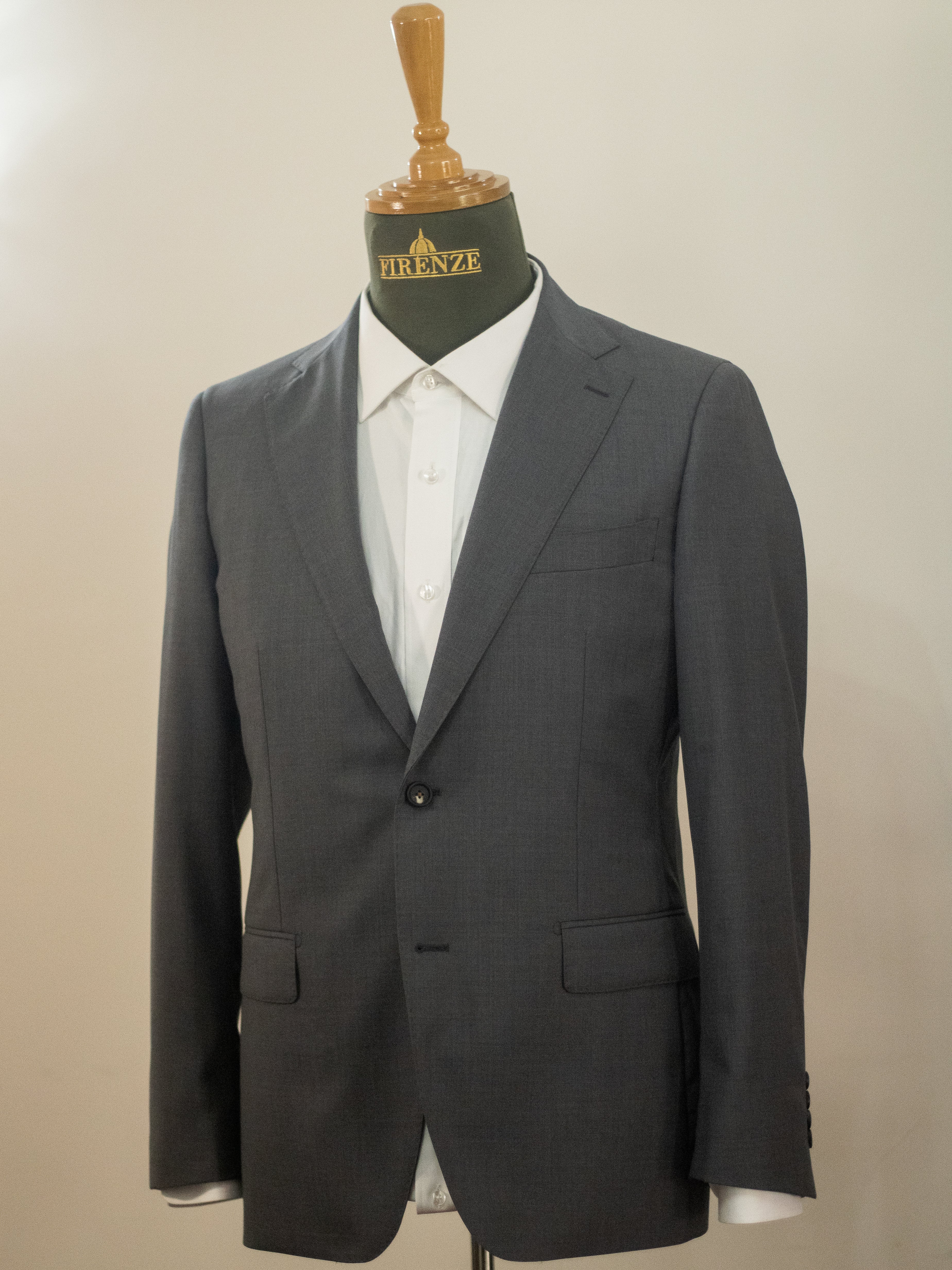 Detalles: Traje 100 % Lana, solapa clásica en v de 9 cm y pantalón con hebillas laterales.