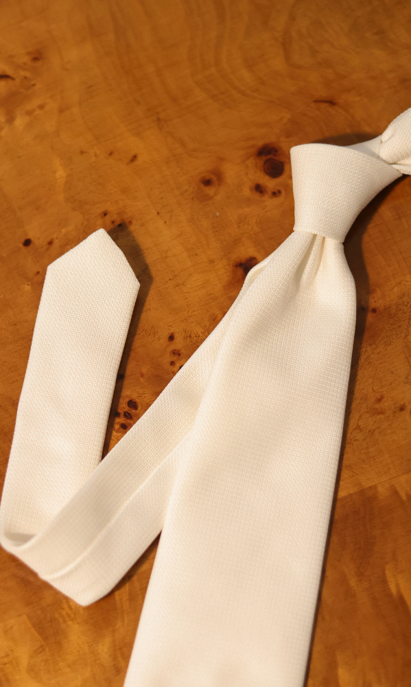 Corbata blanco perla con textura piqué 100% Seda, confeccionada en Italia.