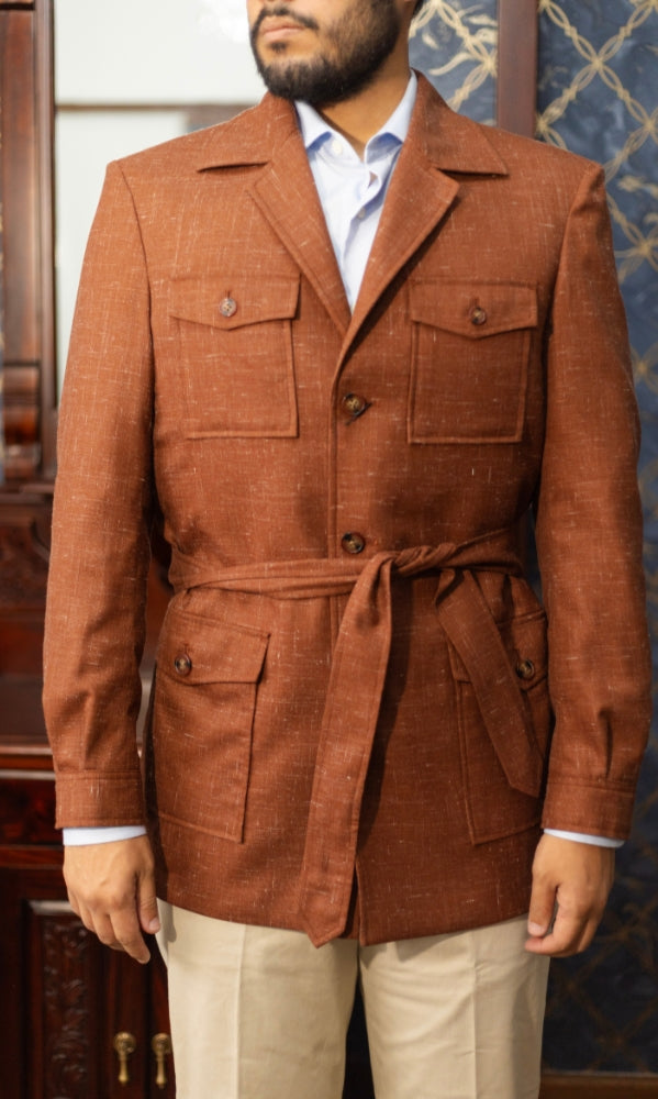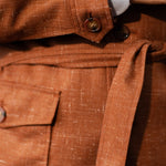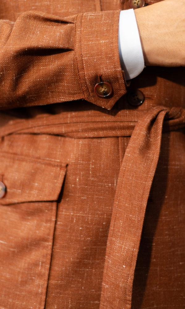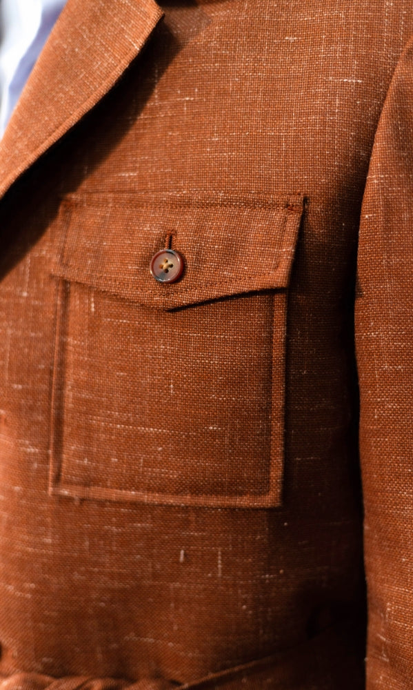 - Bolsillo del pecho y lateral sin pliegues con botón.