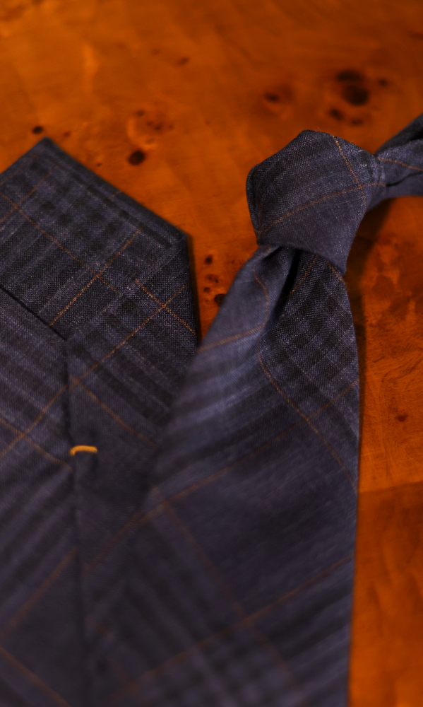 Corbata con propósito tartan azul con líneas mostaza