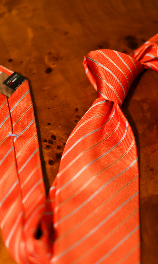 Corbata naranja con líneas diagonales celeste y beige 100% Seda