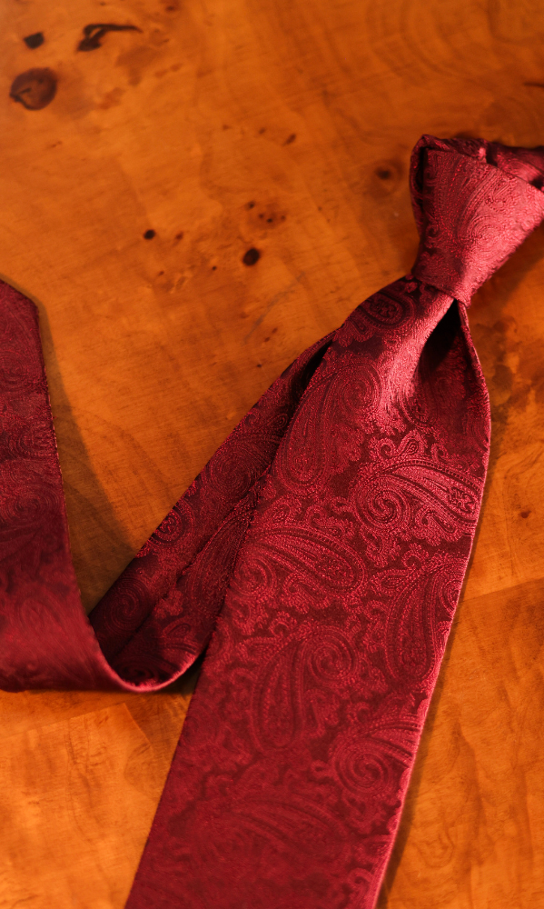 Corbata Borgoña paisley al tono 100% Seda. Confeccionada en Italia.