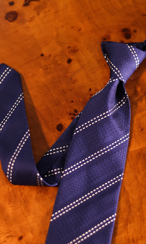 Corbata Morada regimental tramada con líneas punteadas blancas 100% Seda. Confeccionada en Italia.