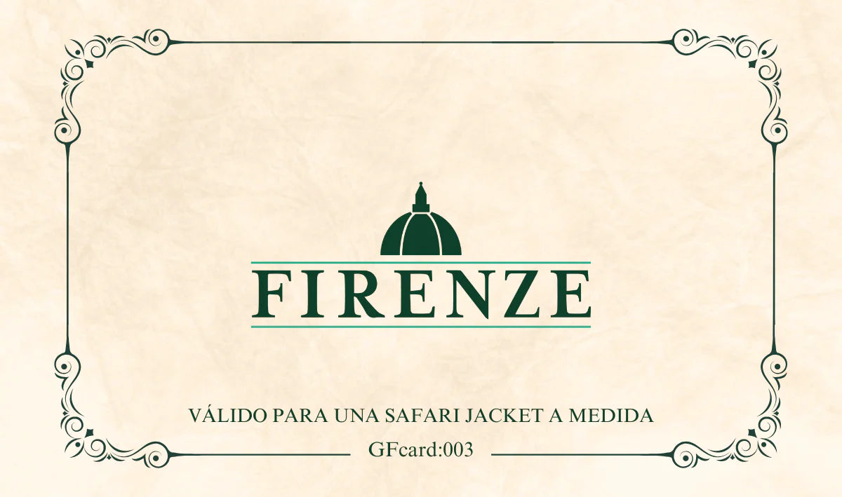 Sorprende a tu persona favorita con nuestra Firenze Card. Un regalo único que le permitirá elegir una safari jacket a medida que resaltará su estilo y elegancia.